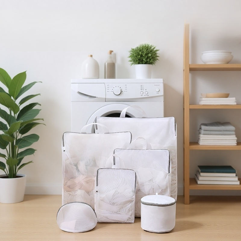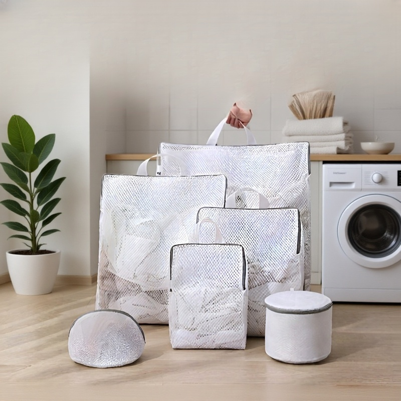 【2種類から選べます:細目/ハニカム粗目】4点/6点セットの3Dランドリーバッグは、衣類の型崩れを効果的に防ぎます。小・中・大サイズに加え、特大・三角・丸型の下着用ランドリーバッグもご用意しています。